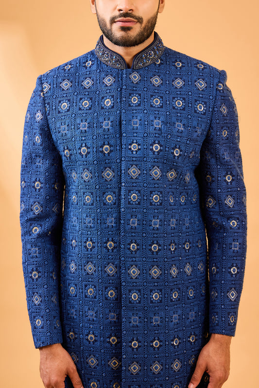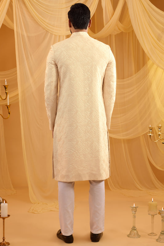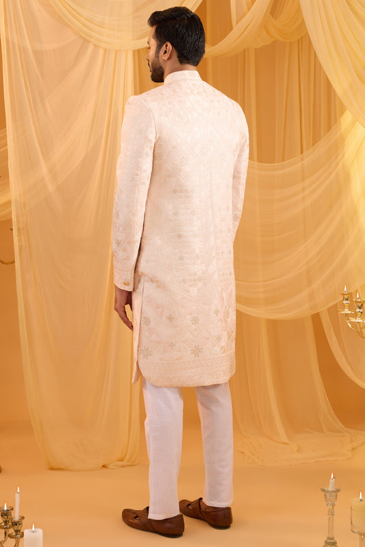Pale Pink Lucknowi Embroidered Sherwani Set