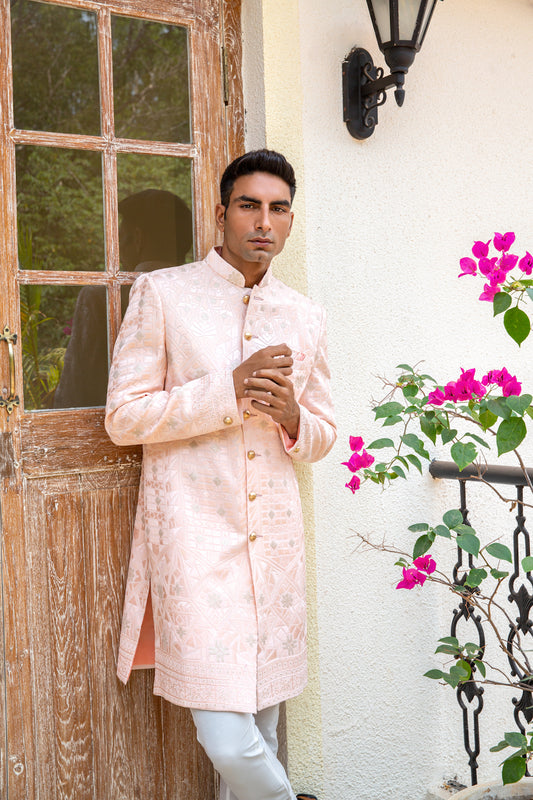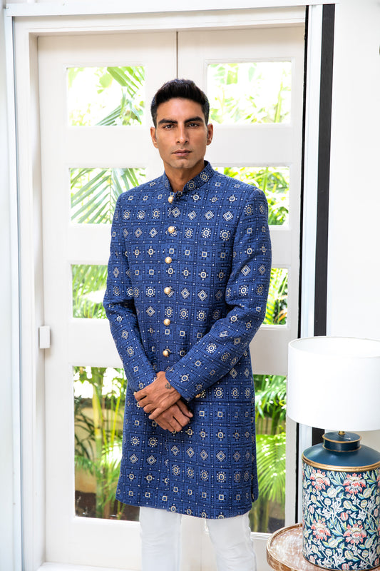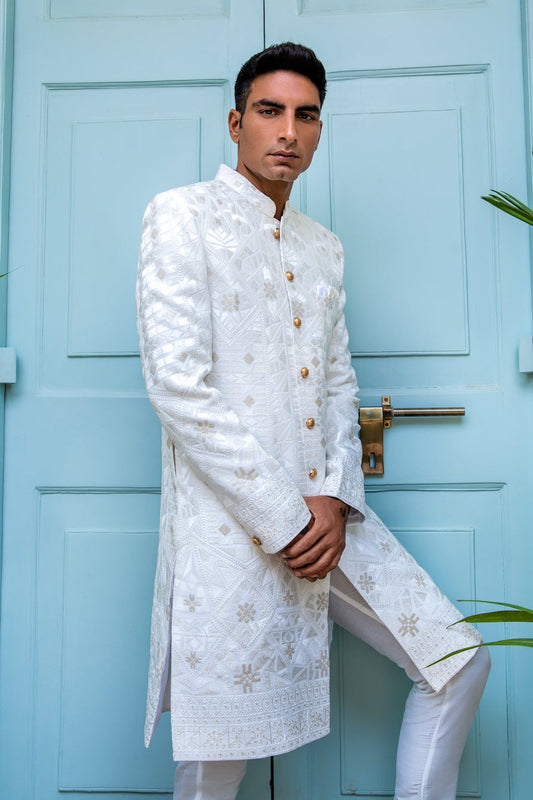 White Lucknowi Chikankari Embroidered Sherwani Set