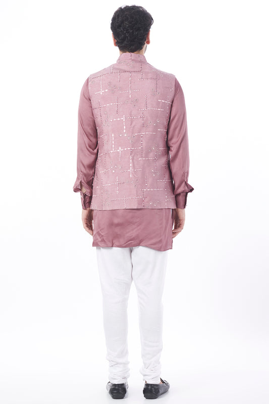 Lilac Mirror Work Nehru Jacket with Kurta Set