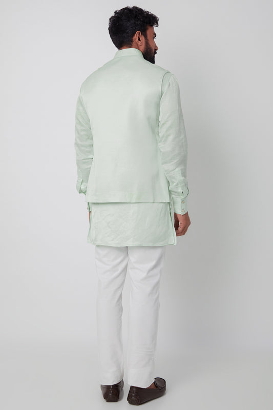 Mint Green Linen Satin Nehru Jacket With Kurta Set