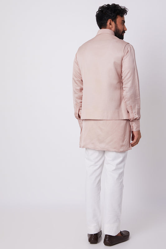 Blush Pink Linen Satin Nehru Jacket With Kurta Set